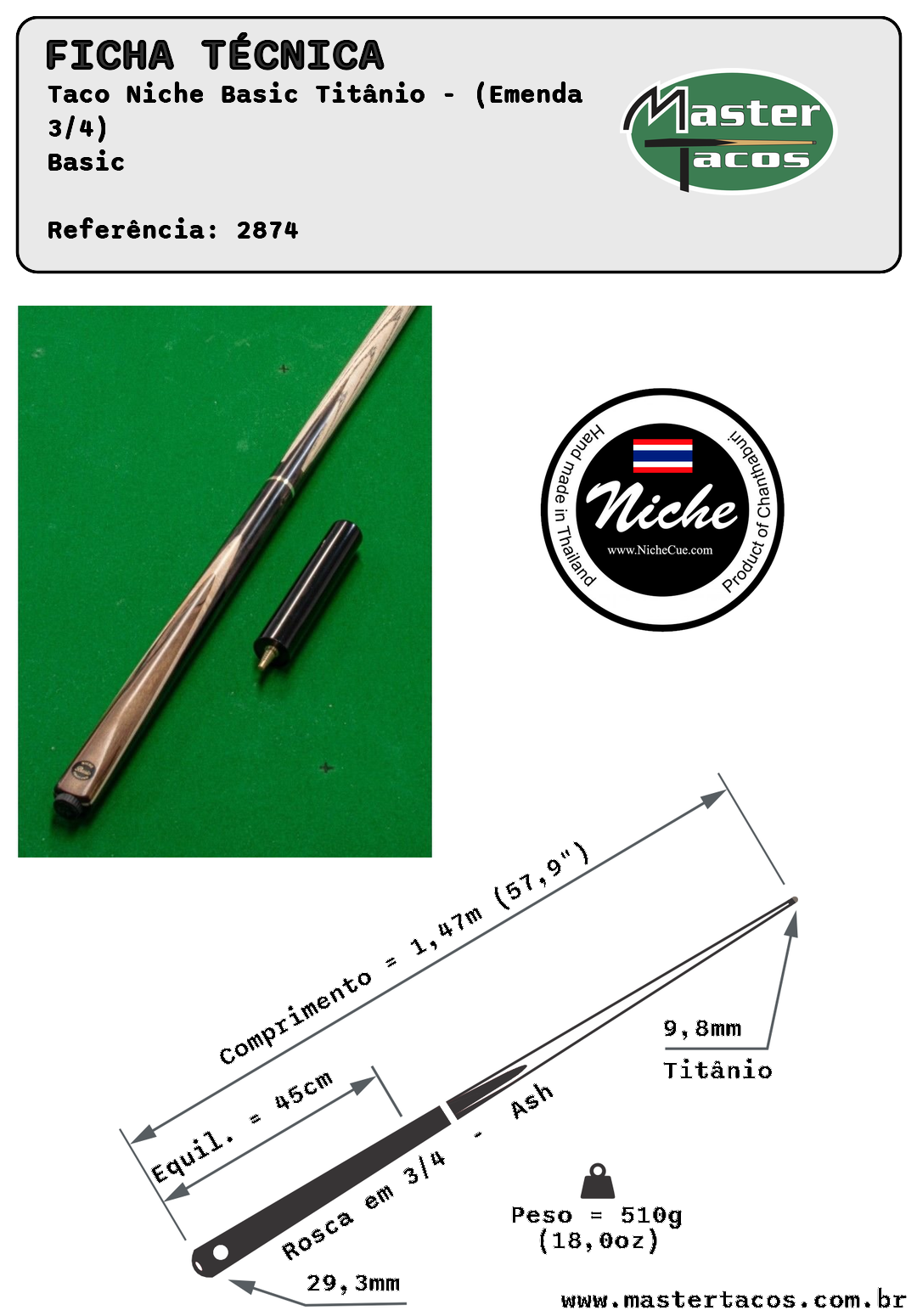 Niche Cues é uma fábrica da Tailândia que tem como principal característica o cuidado com o acabamento, são tacos profissionais de ótima qualidade!