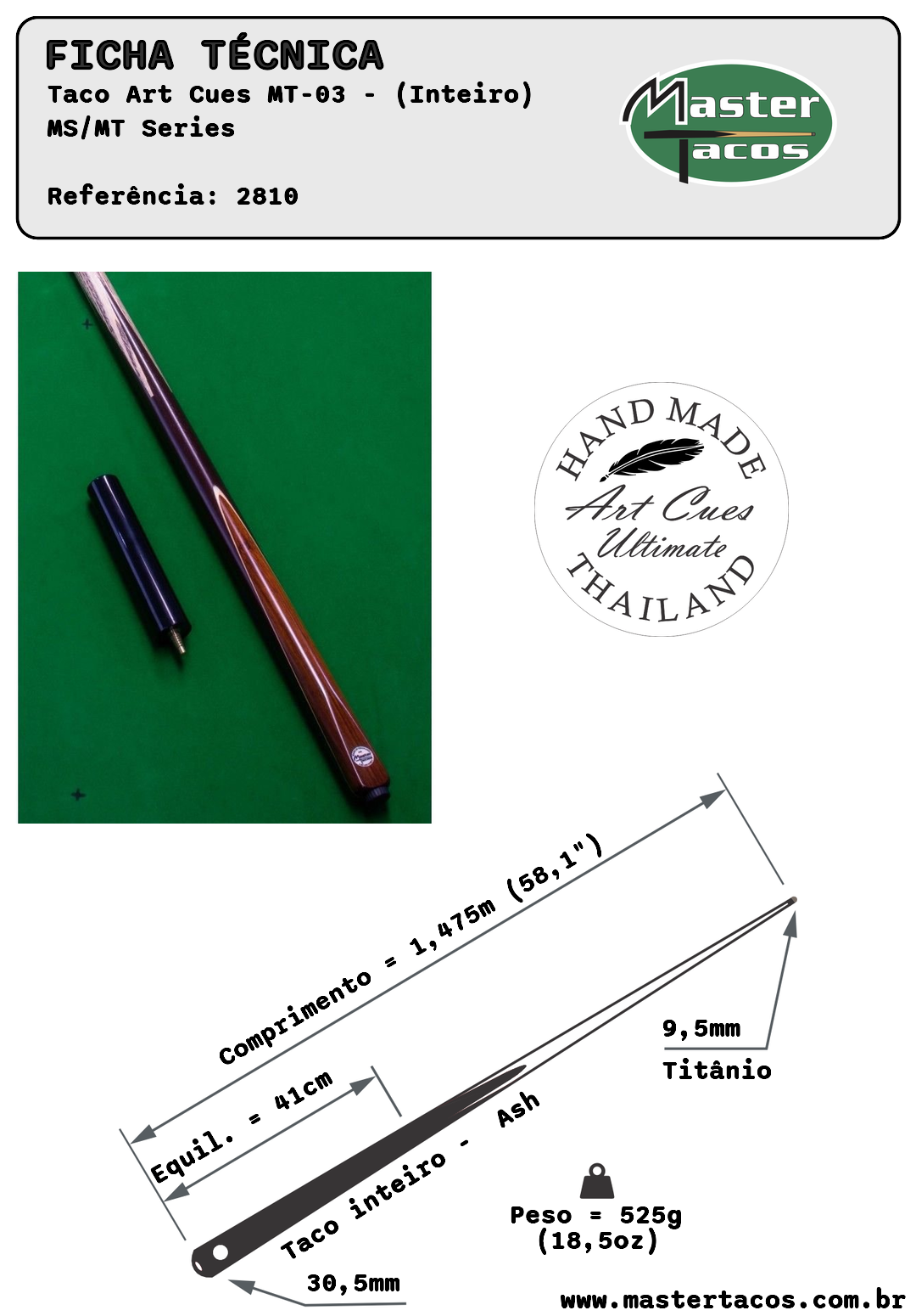 Taco ART Cues MT Series - Série de tacos especialmente fabricada para a Mastertacos sob medida para o gosto do jogador brasileiro!