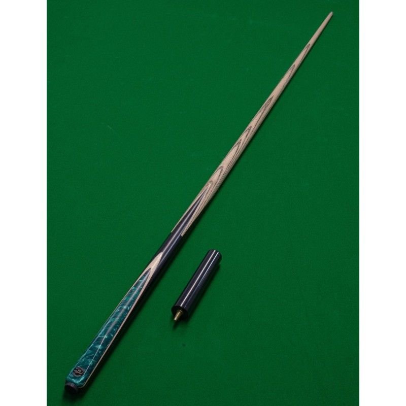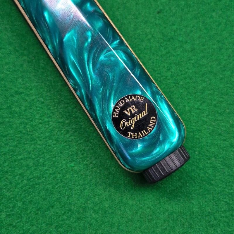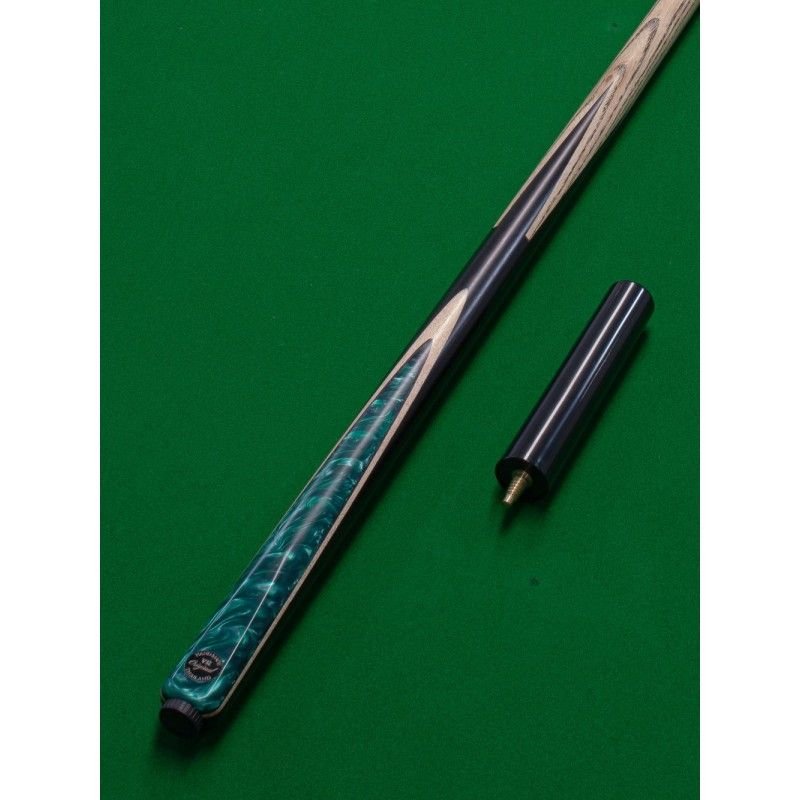Taco VR Cues modelo Original - Taco inteiro com ponteira em madeira ASH, cabo garfado em Ébano Massacar e detalhe em maple e resina verde.