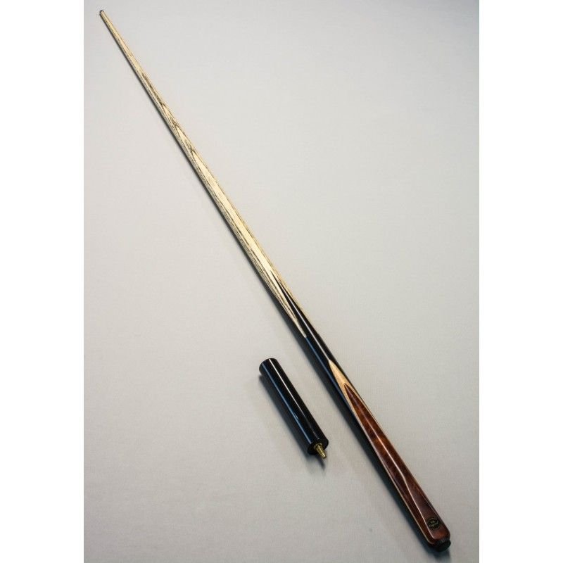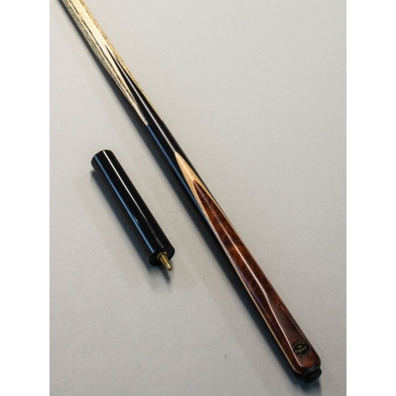Taco inteiriço (one piece) com ponteira em madeira ASH e cabo em Ébano Macassar (preto/marrom) e detalhe em Maple e Padauk, combinando beleza, equilíbrio e performance profissional.