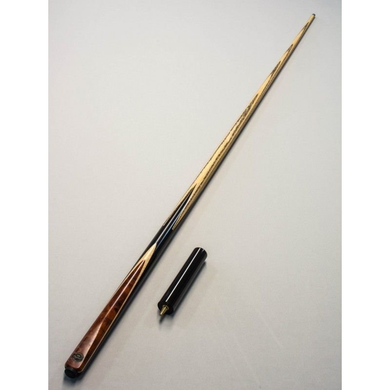 Taco inteiriço (one piece) com ponteira em madeira ASH e cabo em Ébano Macassar (preto/marrom) e detalhe em Maple e Padauk, combinando beleza, equilíbrio e performance profissional.
