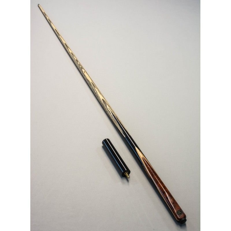 Taco inteiriço (one piece) com ponteira em madeira ASH e cabo em Ébano Macassar (preto/marrom) e detalhe em Maple e Padauk, combinando beleza, equilíbrio e performance profissional.