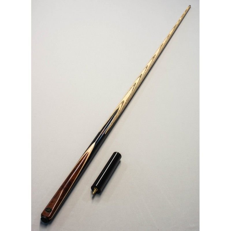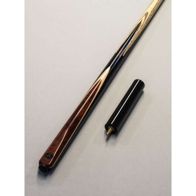 Taco inteiriço (one piece) com ponteira em madeira ASH e cabo em Ébano Macassar (preto/marrom) e detalhe em Maple e Padauk, combinando beleza, equilíbrio e performance profissional.