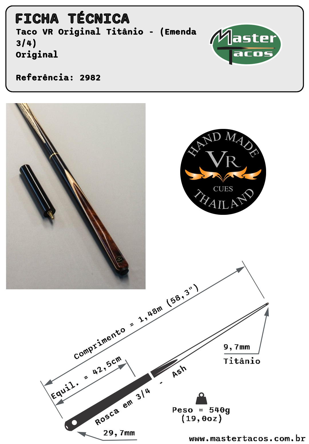 Os tacos da VR Cues conquistaram grande reconhecimento na Europa graças à qualidade superior da madeira, rigidez ideal e acabamento impecável.