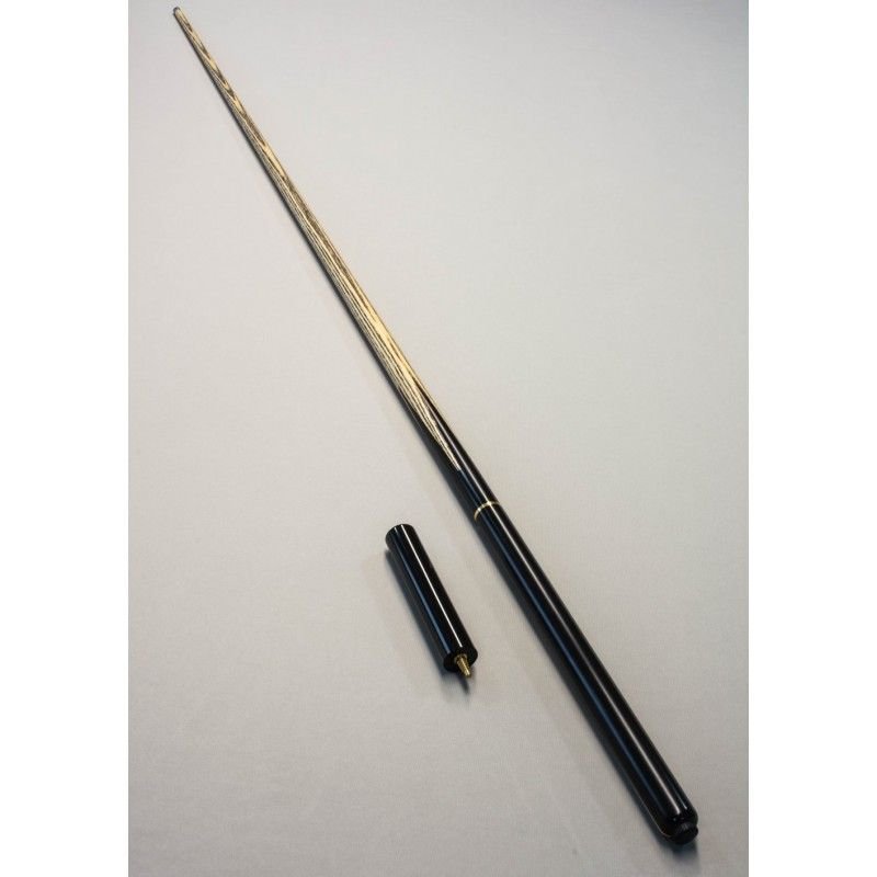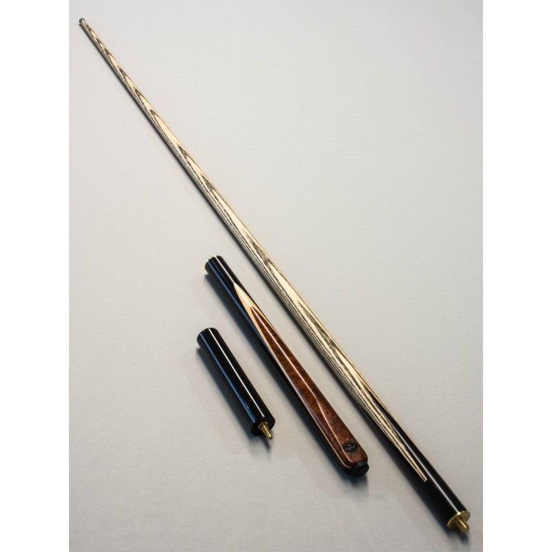 Taco inteiriço (Emenda com rosca em 3/4) com ponteira em madeira ASH e cabo em Ébano Macassar (preto/marrom) e detalhe em Maple e Padauk, combinando beleza, equilíbrio e performance profissional.