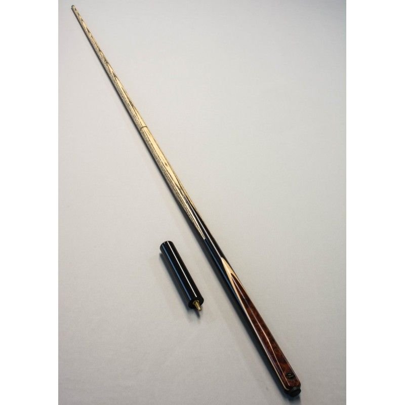 Taco inteiriço (Emenda com rosca em 1/2, no meio) com ponteira em madeira ASH e cabo em Ébano Macassar (preto/marrom) e detalhe em Maple e Padauk, combinando beleza, equilíbrio e performance profissional.