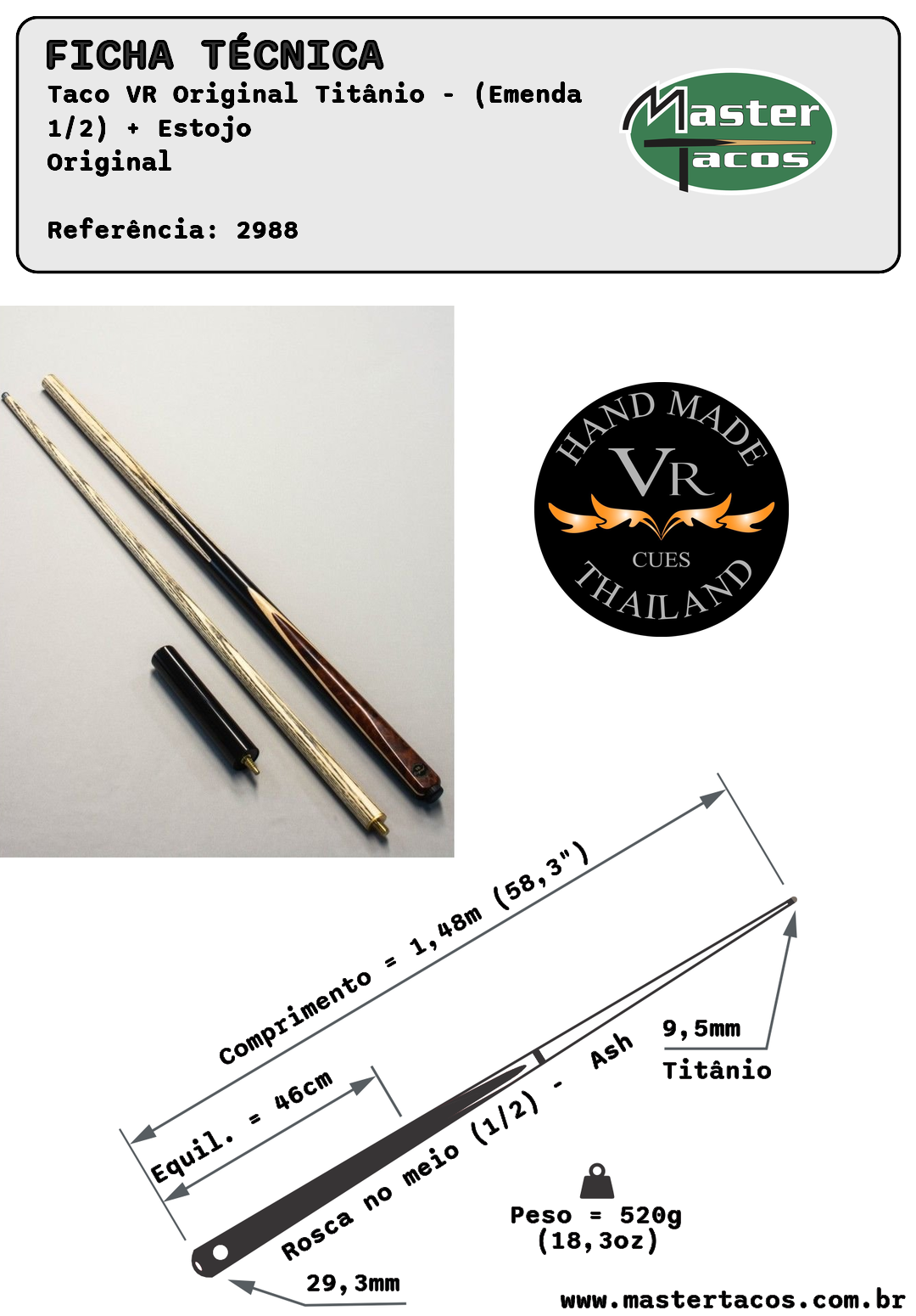 Os tacos da VR Cues conquistaram grande reconhecimento na Europa graças à qualidade superior da madeira, rigidez ideal e acabamento impecável.