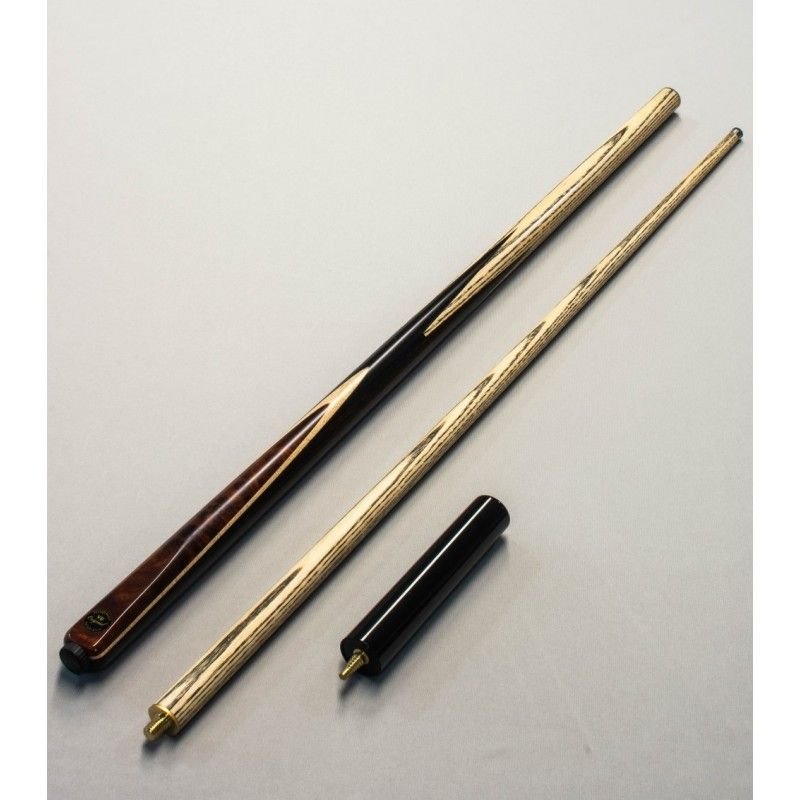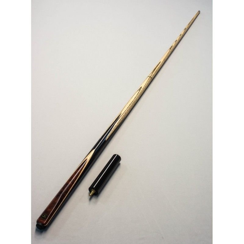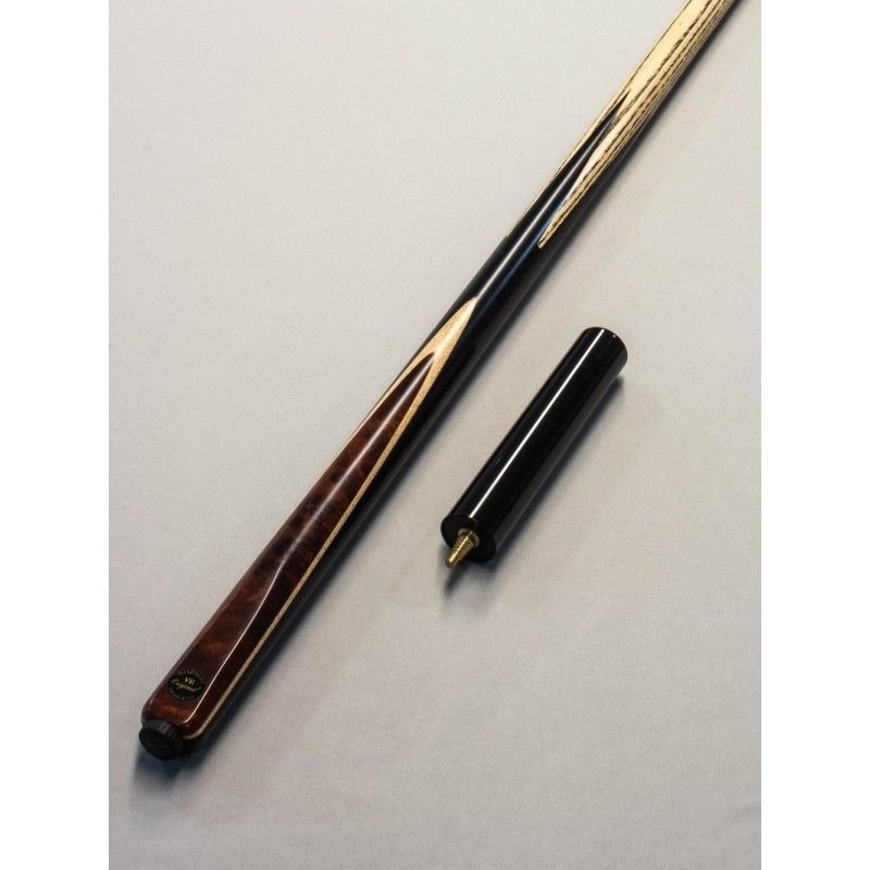 Taco inteiriço (Emenda com rosca em 1/2, no meio) com ponteira em madeira ASH e cabo em Ébano Macassar (preto/marrom) e detalhe em Maple e Padauk, combinando beleza, equilíbrio e performance profissional.