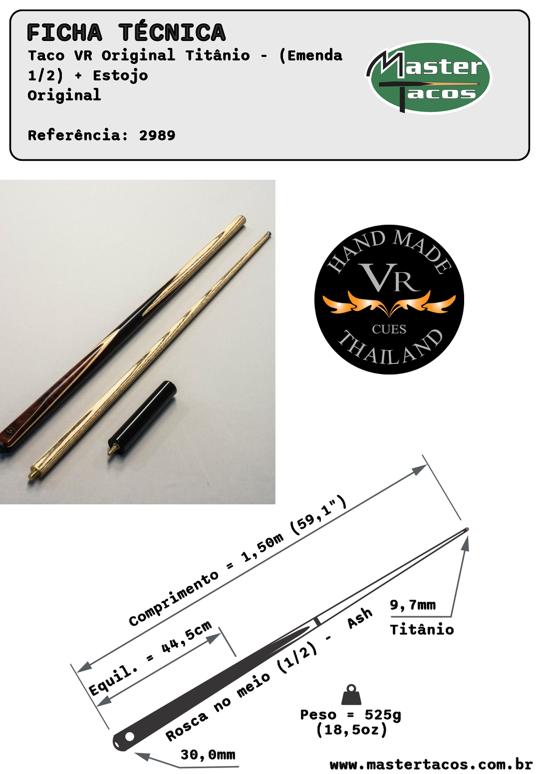 Os tacos da VR Cues conquistaram grande reconhecimento na Europa graças à qualidade superior da madeira, rigidez ideal e acabamento impecável.