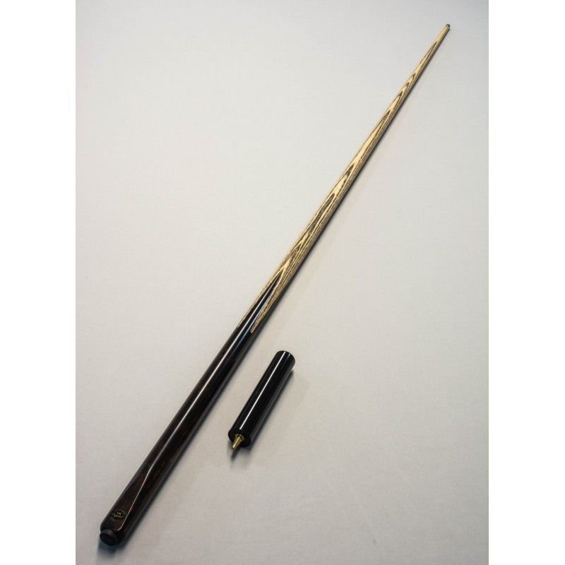 Taco inteiriço (one piece) com ponteira em madeira ASH e cabo em Ébano Macassar (preto/marrom), combinando beleza, equilíbrio e performance profissional.