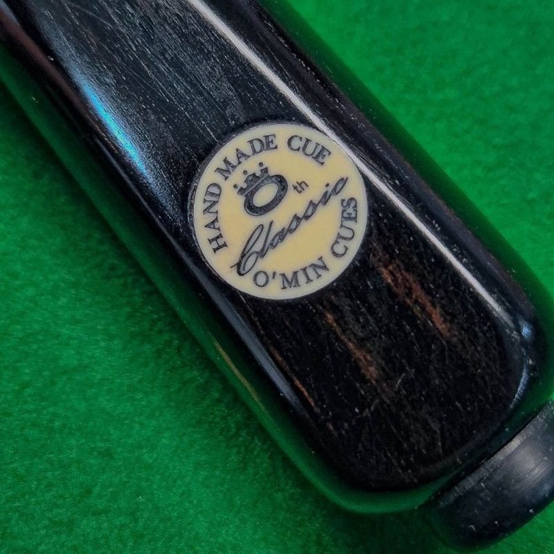 Taco de sinuca marca O'min modelo Classic (Inteiro) com ponteira em madeira ASH selecionada, cabo em ébano africano maciço.