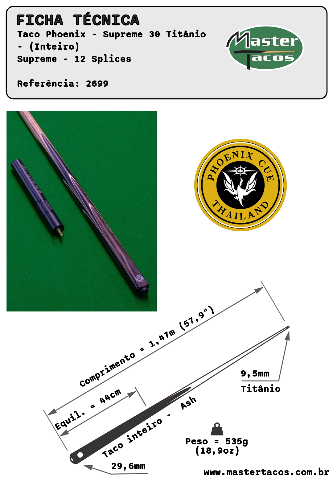 Atualmente a Phoenix é uma das marcas de taco de sinuca mais cobiçadas do mundo, e agora está ao seu alcance.