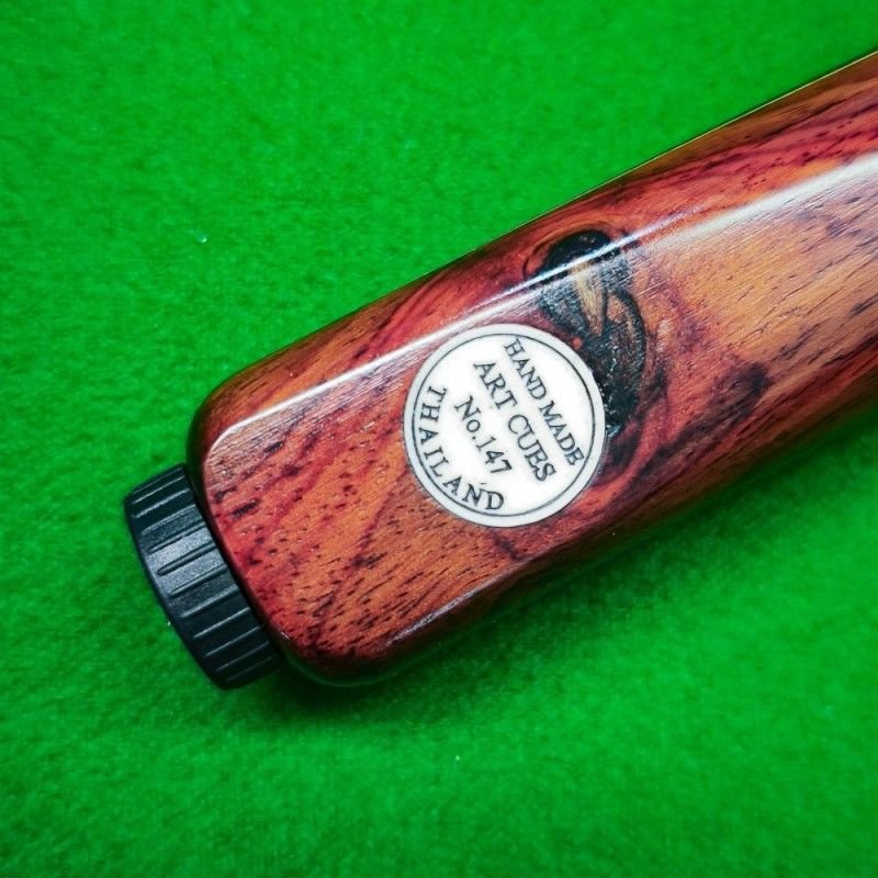 Taco ART CUES série Machine Spliced - (Inteiro, sem emenda) com ponteira em madeira ASH, cabo garfado em madeira ébano africano legítimo e detalhe marchetado.