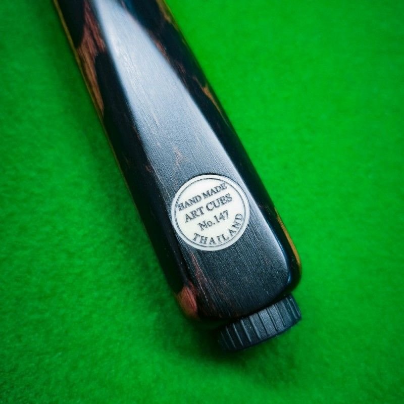 Taco ART CUES série SPECIAL - (Inteiro, sem emenda) com ponteira em madeira ASH selecionada, e cabo garfado em madeira ébano africano legítimo e detalhe em Carvalho e Ébano Macassar.