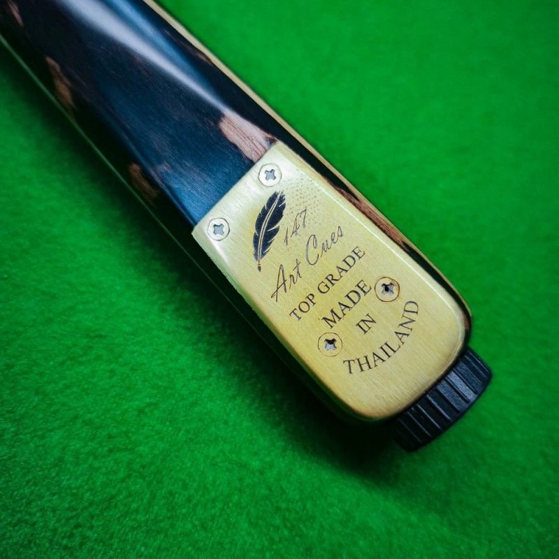 Possui ponteira em madeira norte-americana ASH, reconhecida pela excelente resposta nas tacadas, e cabo em Ébano Africano, uma madeira nobre e elegante em tons de preto e marrom.