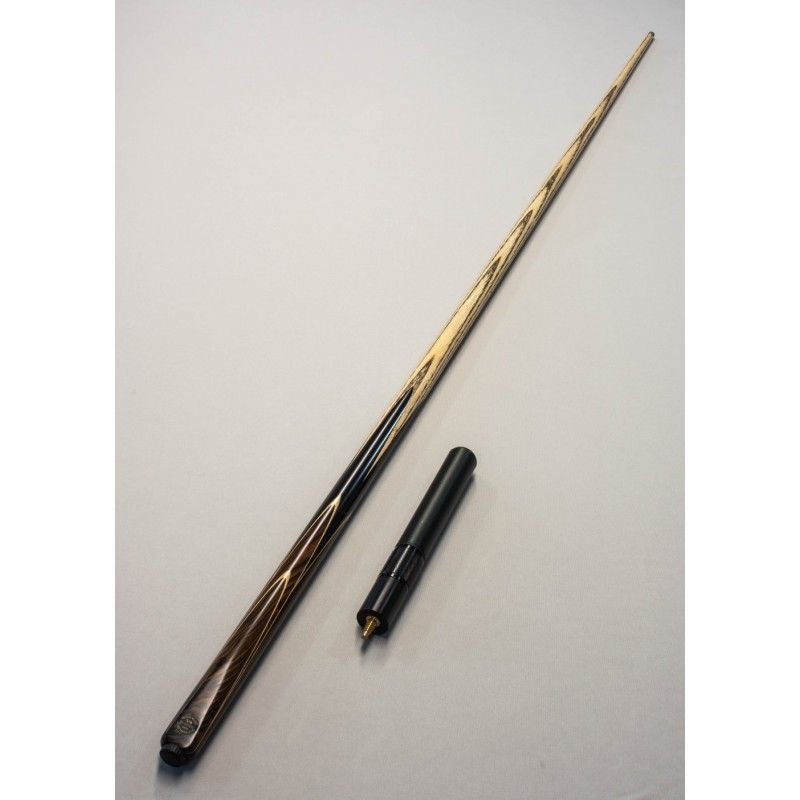 Taco inteiriço (one piece) com ponteira em madeira ASH selecionada e cabo em Ébano Africano legítimo e detalhes em Maple Azul e Rosewood, combinando beleza, equilíbrio e performance profissional.