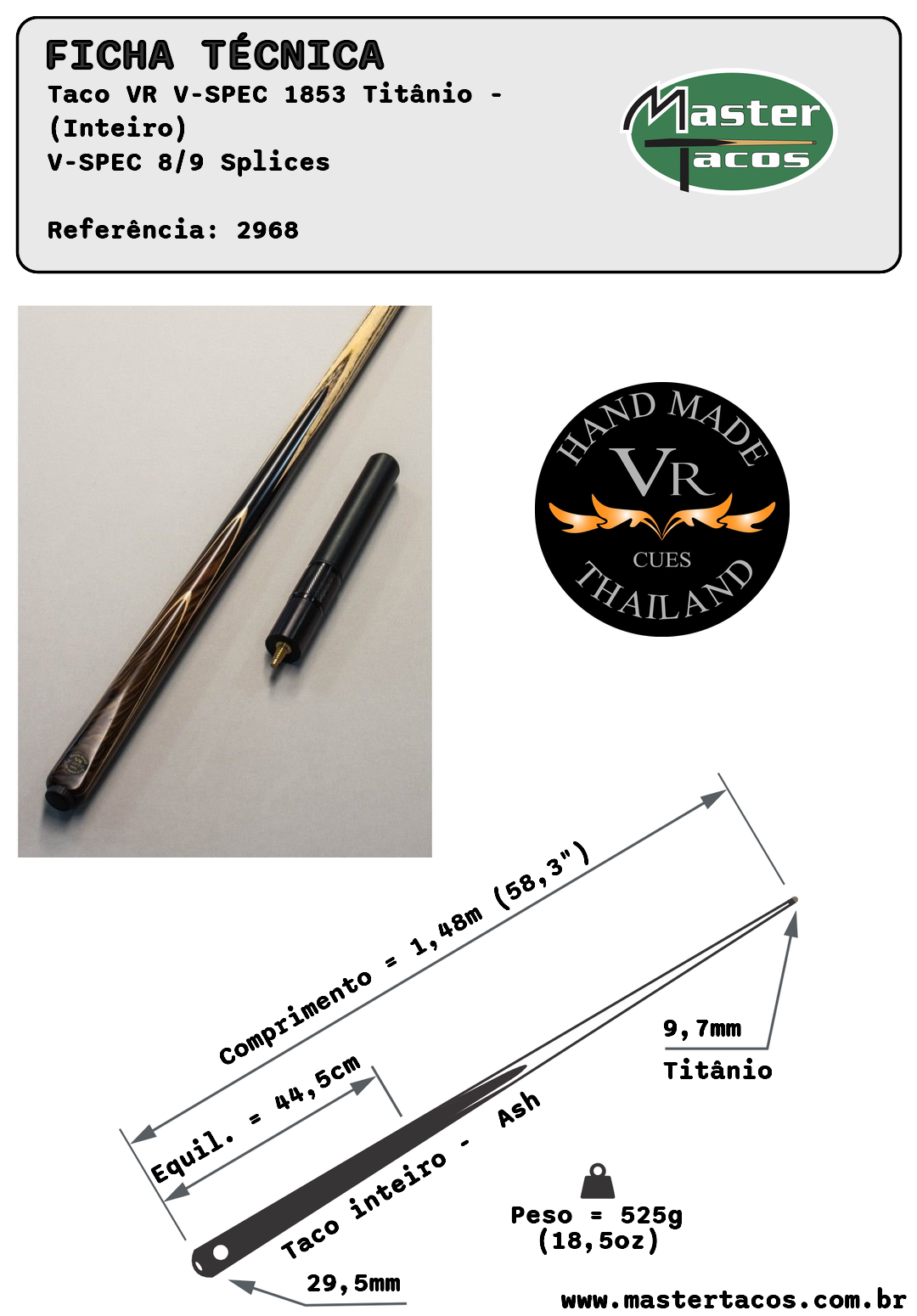 Os tacos da VR Cues conquistaram grande reconhecimento na Europa graças à qualidade superior da madeira, rigidez ideal e acabamento impecável.